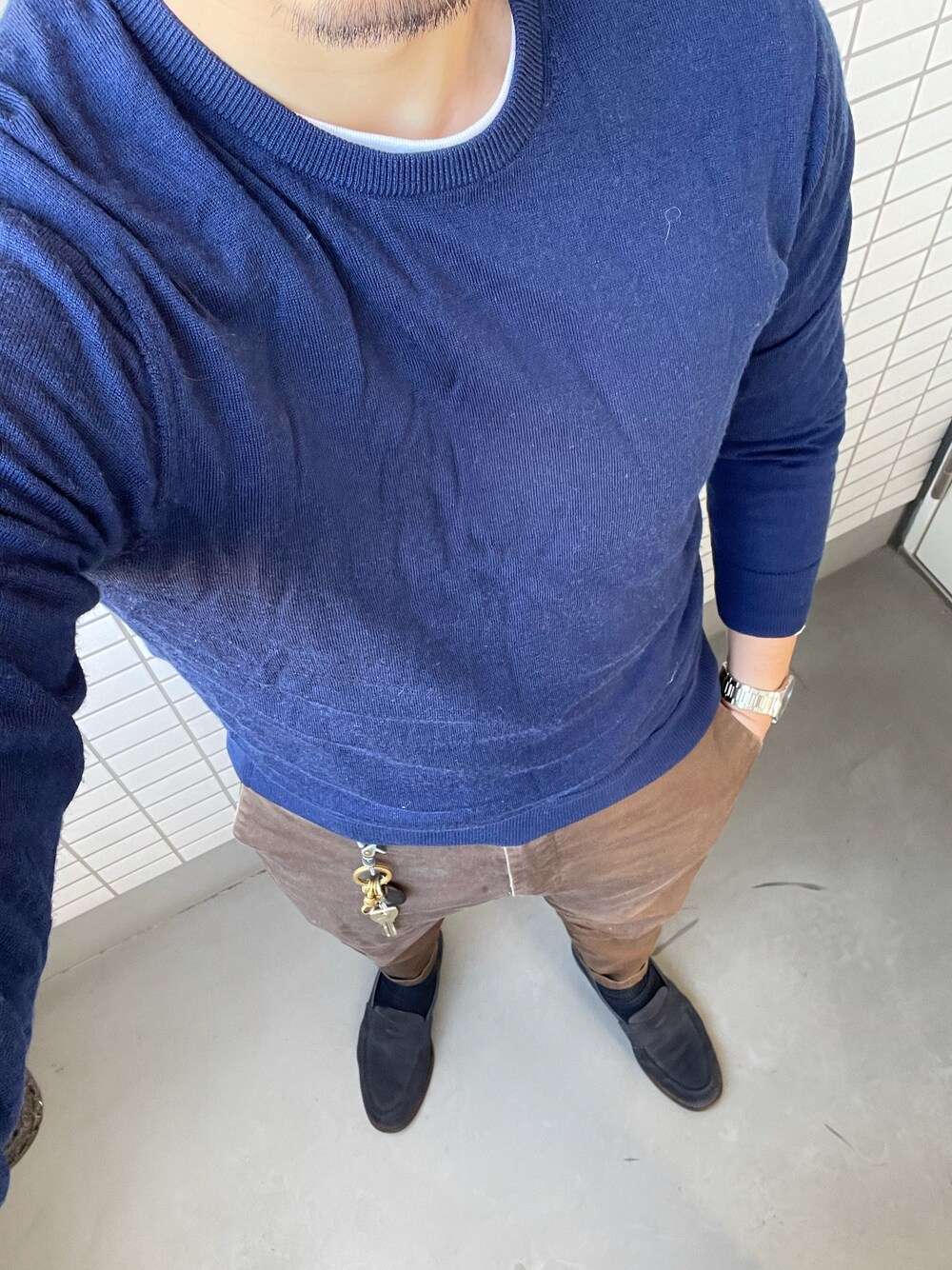 なおきのニット/セーター「エクストラファインメリノクルーネックセーター(長袖)」を使ったコーディネート