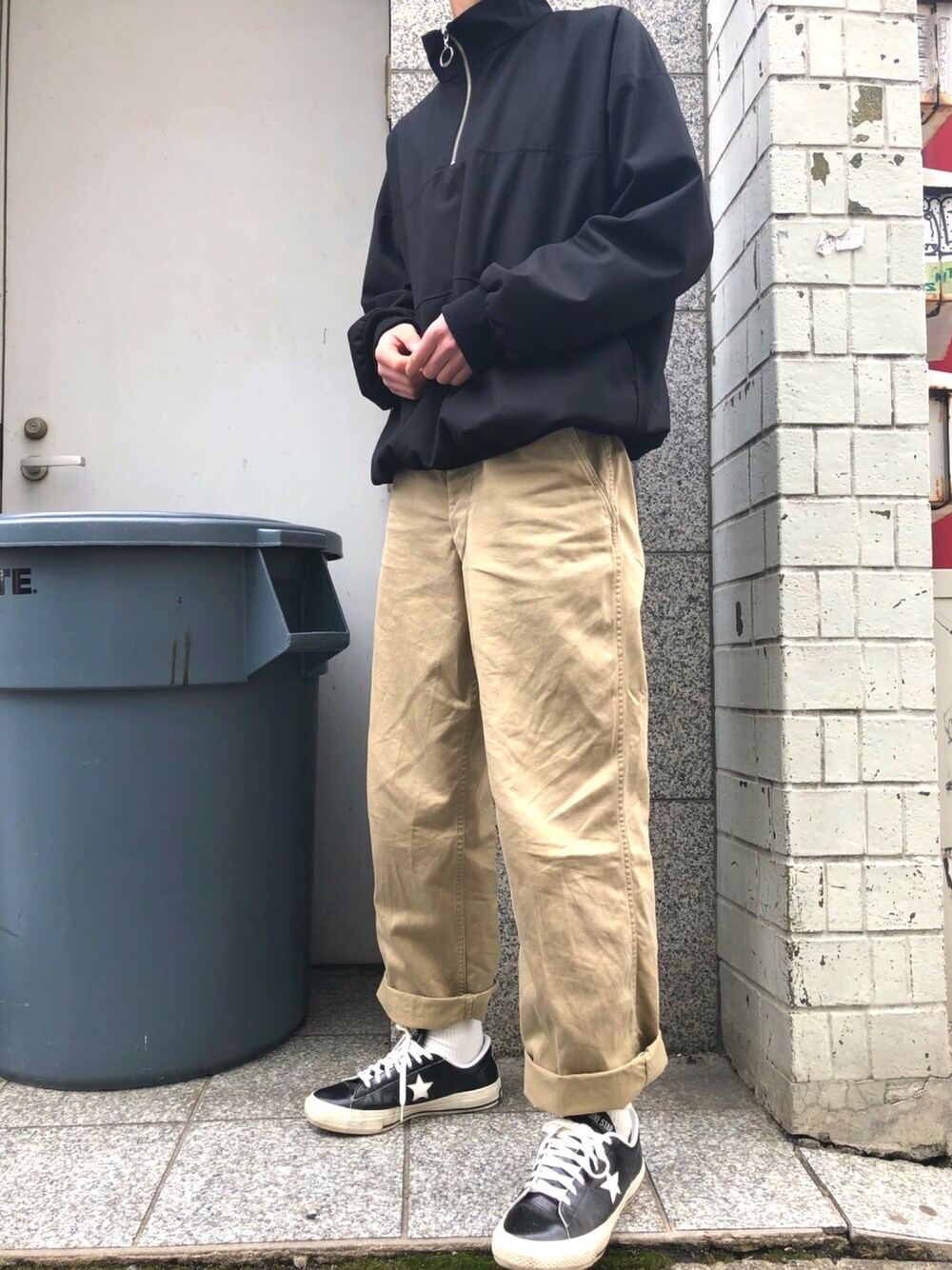 流行りのハーフジップとチノパン!! どっちもめっちゃ可愛い。 : : ハーフジップは1枚で雰囲気でるから超楽チノパンは個人的に太い方好き!靴下見えるくらいロールアップするのも良いなあ