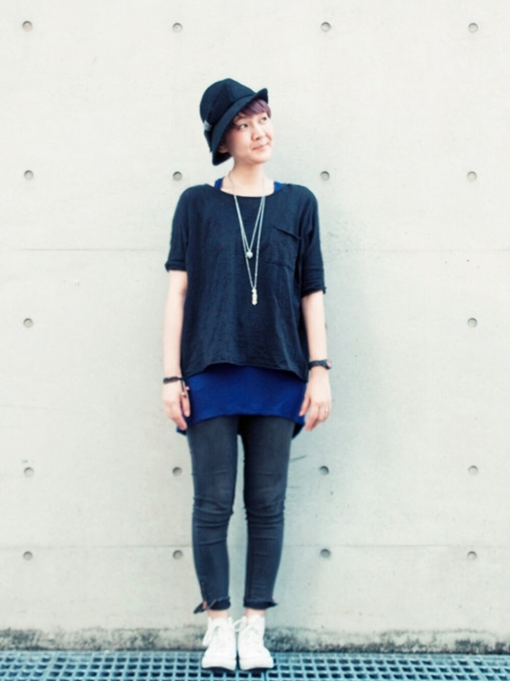 ジャズダンサー的な~? やっと、帽子が被れる季節がやってきましたね~♪ ということで、去年購入してから一度も被ったことのないハットを被ってみました。 そしたら、つれに、”ジャズダンスの先生みたい~”といわれました。 ダンサーって、なんてみんな帽子被るのかね…髪の毛が飛び跳ねるから~??? コーデについて 今日は全身黒いので、青いのタンクトップを入れてみました。 まあ、一番眼立つのがパープルの髪ですけどね… ではでは。 外は土砂降りの雨、 今夜は餃子ても作ろうかしら…