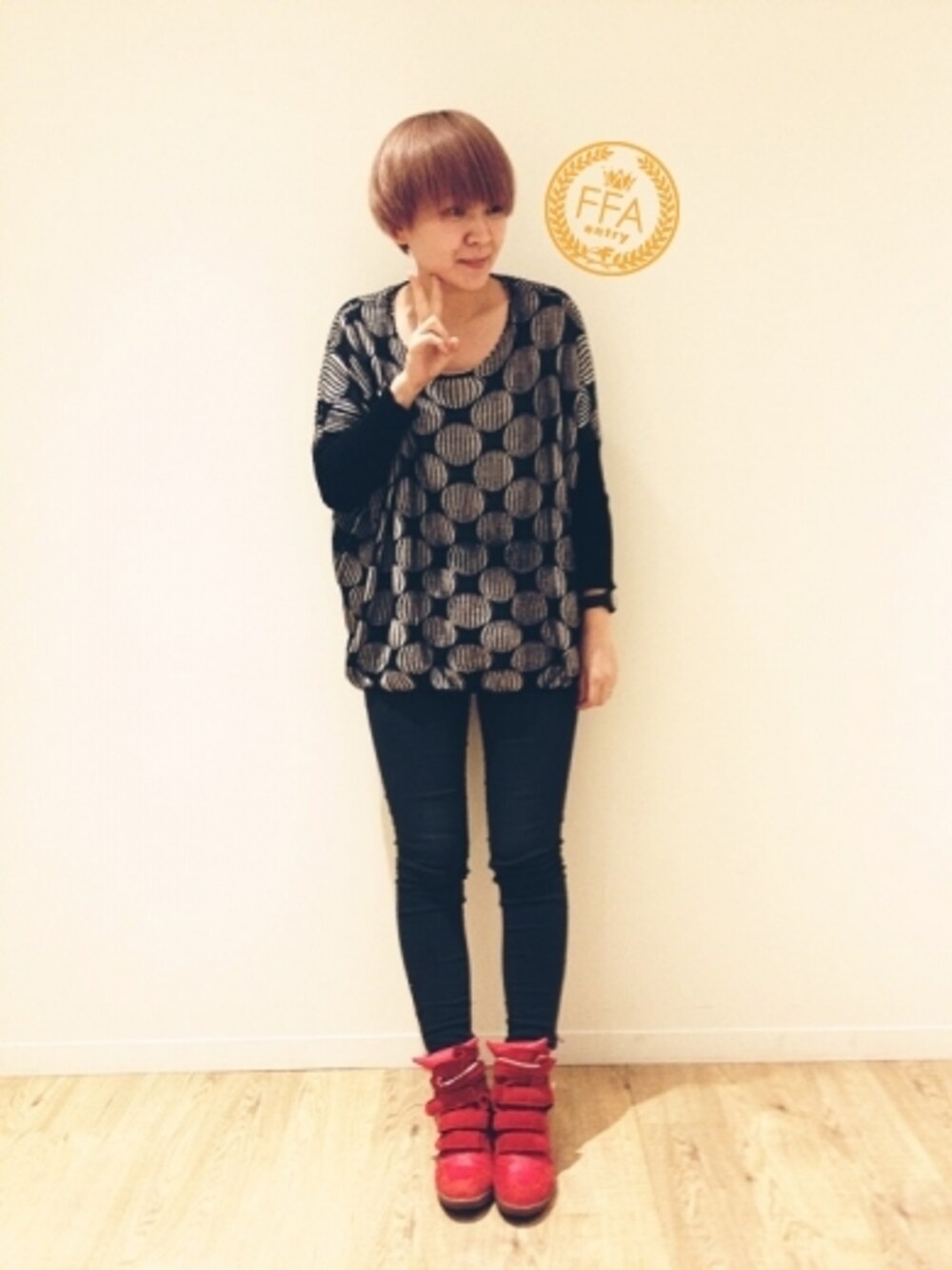黒でぽっちゃりを隠そうぜ! の巻 本日のコーデ: 黒でまとめました。 そして、ぽっちゃ部門に投稿してみた★ やっぱぽっちゃり隠すのは黒だよね。 あとあと、ポイントは上の横幅の広い服。 骨盤が出てても、相対効果?でそれなりに見える。。。 あと、あと、 今日おニューの靴入ってみた。 最近はやっているインヒールのスニーカ、激安で購入!! そんなこんなで、今日は激安コーデです。 Top:1000円 パンツ:2000円 靴:3000円 以上。ぽっちゃりの巻でした★ coolよろぴく