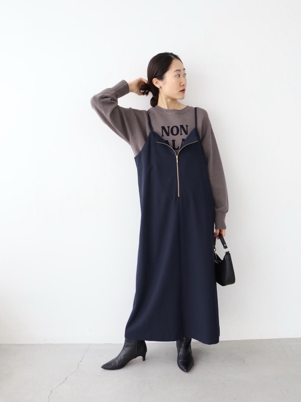 30代前半/159cm/骨格ナチュラル/普段サイズS-M/着用サイズ38/instagram:otm_____98 【ダブルジャガードロゴニット】 サイズ感:ちょうど良い、ヒップにかかる丈 素材感:分厚くなく、柔らかい 着用感:なめらかでチクチク感なし 【フィルムストライプキャミワンピース】 サイズ感:程良いゆとりあり、丈は調節可能 素材感:さらっと綺麗めな生地感、少し光沢あり 着用感:ストレスフリーで穿ける!着脱もしやすい。