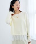 30代前半/159cm/骨格ナチュラル/普段サイズS-M/着用サイズ38/instagram:otm_____98 【裾レース畦編みニットプルオーバー】 サイズ感:程よいゆとり、ヒップギリギリ隠れる丈 素材感:厚すぎないニット素材、柔らかい 着用感:軽くて端境期にちょうど良い◎ 【ピーチスキンイージーパンツ】 サイズ感:やや長めだけどゆるっと履くなら◎ 素材感:サテンやスエードの中間のような生地感 着用感:ウエストゴムで楽に捌けます。