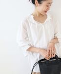 30代前半/159cm/骨格ナチュラル/普段サイズS-M/着用サイズ38/instagram:otm_____98 【シアーフリルネックブラウス】 サイズ感:ややゆったりめ、ヒップが隠れる丈 素材感:ハリはあまりなし、薄手、透け感あり 着用感:ネックと袖にデザインがあるので単調になりません。 【ストレッチツータックテーパード】 サイズ感:腰まわりややゆったり、足首ぐらいの丈 素材感:ほんの少しだけハリ感あり、やや薄手 着用感:ストレッチが効いていて動きやすさ◎履いていてとても楽です。