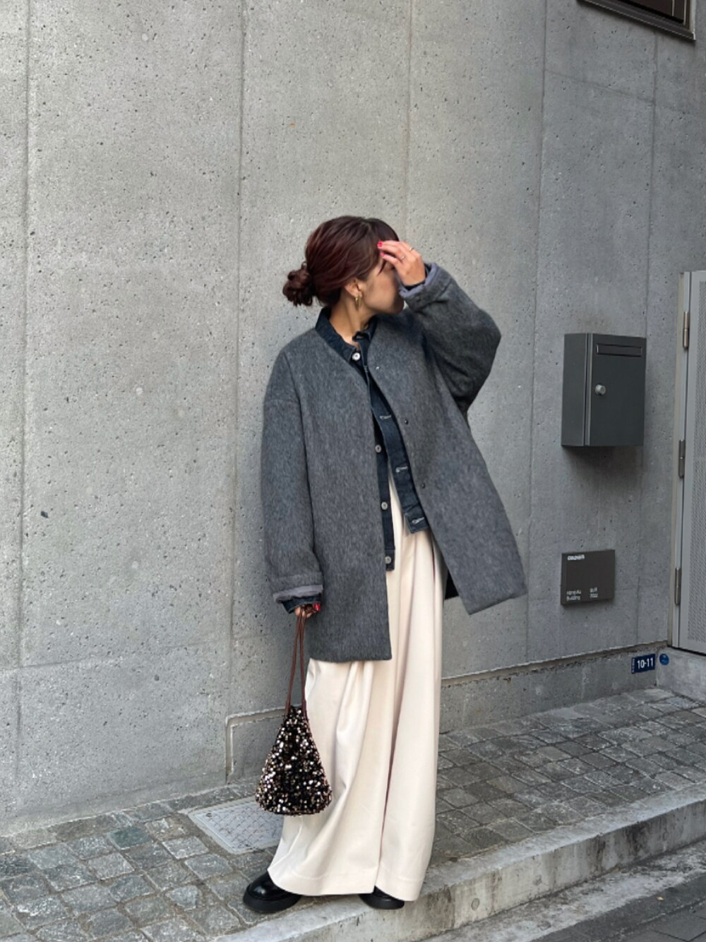 寒くなって来たこれからの時期にぴったりなデニムジャケット×ノーカラーコート!! コートは厚手すぎないのでジャケットなど重ねて、レイヤードスタイルが楽しめるなもポイントです♡