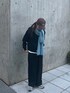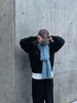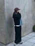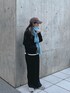 【パンツ】Mサイズ その他は全てFREEサイズ colonyのオールブラックコーデ! 重たく見えないようにロンTを挟んで、ブルーのふわふわマフラーを差し色にしました! セットアップ風コーデはラフにするとパジャマ見えしがちですが、 小物とカラーの合わせでばちっと見え方かっこよくなるのでオススメです◎