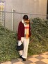 マフラーを主役にしたコーデ! シンプルなお洋服にこそ、カラーマフラーをプラスしてお洒落を楽しんでください!! ちなみにニットはキーネックになっていて、タートルネックを合わせても可愛いです! ※着用サイズ パンツ Sサイズ 残りは全てフリーサイズ