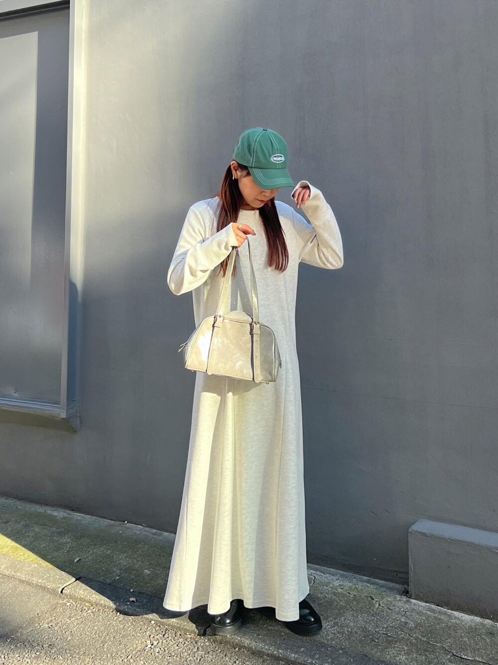 otohaのワンピース「カルゼ長袖フレアワンピース」を使ったコーディネート