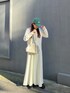ホワイトに近いくらいの薄いグレーのワンピース! 明るさが強めなので、暗くなりがちなこれからの時期に華やかさをプラスしてくれるアイテム! 柔らかいフレアデザインが女性らしさを演出してくれます! ※フリーサイズ着用