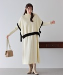 ayuのワンピース「《お気に入り4.5万人突破!/シャギー素材追加/選べる着丈》サイドリボンケープニットベスト&リブニットワンピース セットアップ」を使ったコーディネート