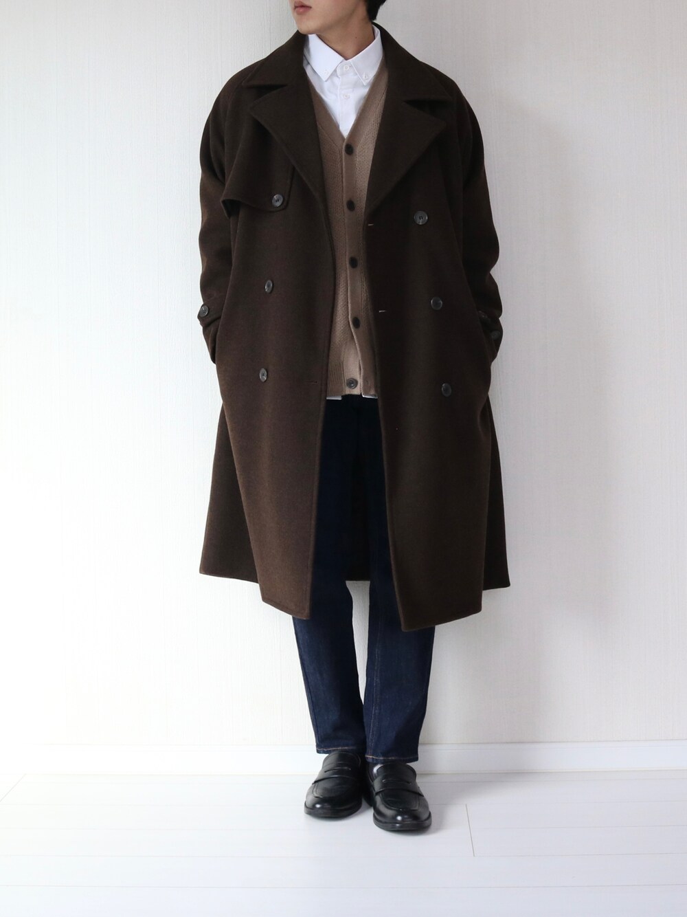 soar -ソア-のトレンチコート「オーバーサイズ メルトンラグランスリーブロングトレンチコート」を使ったコーディネート