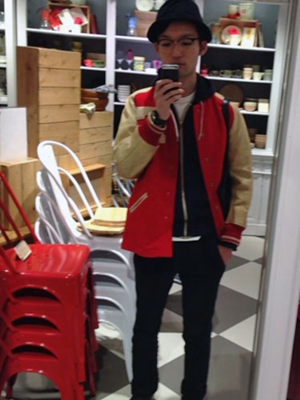 トップス : used パーカー : Scye パンツ : UNIVERSAL PRODUCTS 靴 : foot the coacher 帽子 : coeur メガネ : ayame 時計 : INDEPENDENT