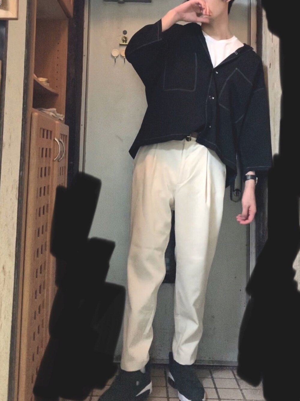 どうもこんにちは。 今回はHAREのステッチシャツを使った白黒のフロントインコーデを組んでみました。 このシャツはかなり大きめで作られていて、175cmある僕でもSサイズを着ています。 ポイントとしてはボトムスをテーパードのパンツにすることで、トップスがゆるさを出し過ぎているのを上手くまとめています。 王道の白黒コーデですが、肩をはずして着ることにより、少し個性を入れたような着こなしにしています。 今回アクセは時計のみですが、ブレスレットやリング、ネックレスなどを使って個性を出すのも面白いなと思いました。 よければいいねやフォロー、saveなどもよろしくお願い致します。