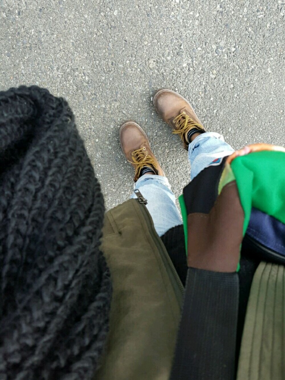 ブラウン系のブーツを着用したレディースの冬コーディネートの1枚目の写真