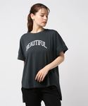 ヴィンテージライクなロゴプリントのTシャツ。 前後差をつけた着丈、オーバーサイズなど、旬のディテール使いが見逃せない一枚☆ デザインTシャツはシンプルにデニムと合わせて大人カジュアルコーデ◎