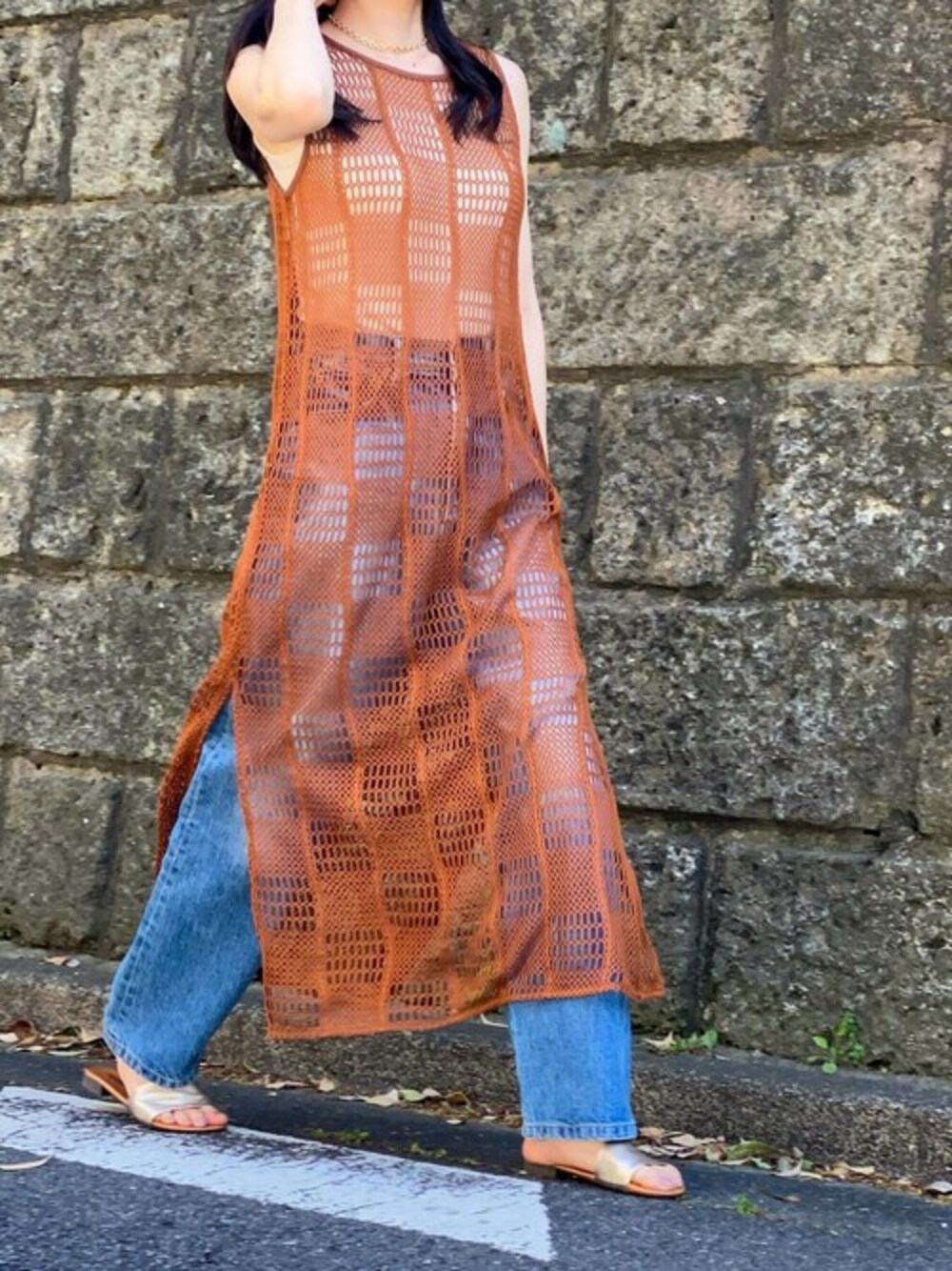 いつものコーデに重ねるだけで、ワンランク上のスタイリングが完成するメッシュワンピース。 デニムパンツとTシャツの上から合わせるだけでお洒落なスタイリングに◎ 一枚で上級者に見えるメッシュワンピースは、この夏の気分にぴったり!