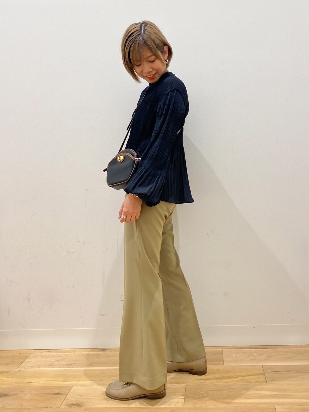 oukaのシャツ/ブラウス「マジョリカプリーツハイネックブラウス」を使ったコーディネート