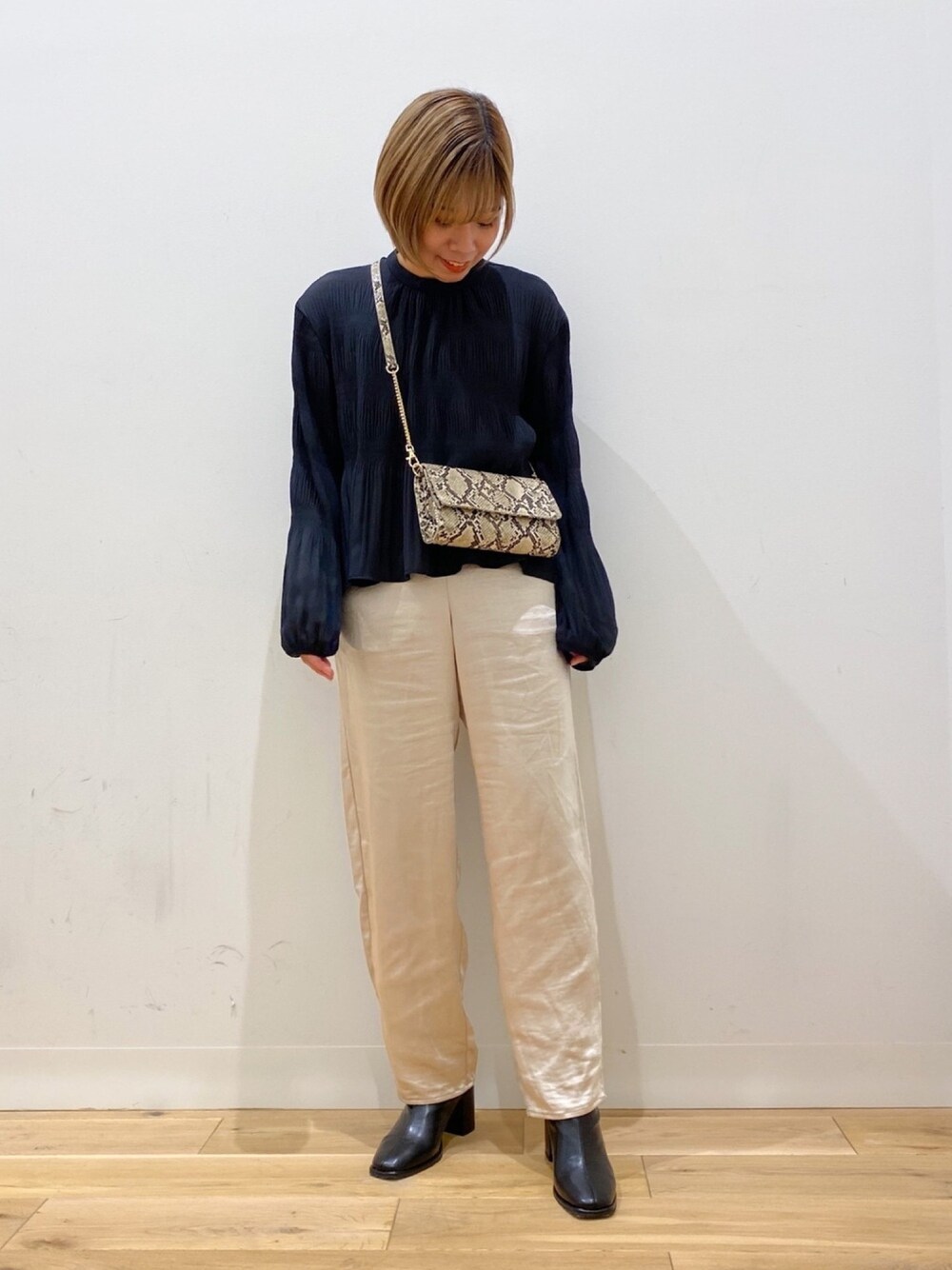 oukaのシャツ/ブラウス「マジョリカプリーツハイネックブラウス」を使ったコーディネート