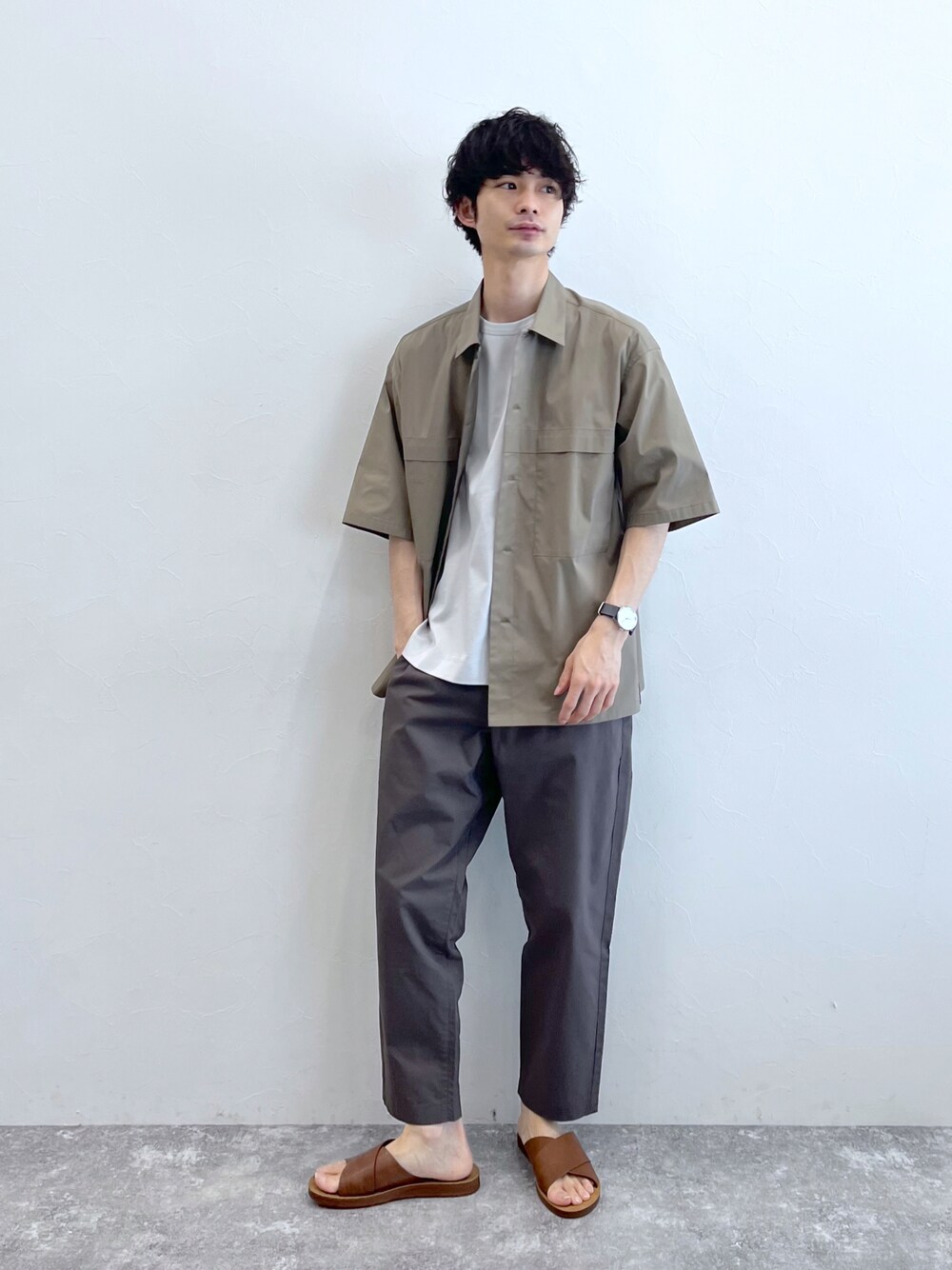 ブラウンでまとめたシャツスタイル ◎こんな方へおすすめ ・カラーをまとめたコーデがしたい ・大人っぽいシャツスタイルがしたい ・羽織るだけのお手軽コーデが知りたい ◎各アイテムのサイズ感や着心地 ・シャツ 身幅がゆったり目のリラックスシルエット 5部袖の大きめなサイズ感です。 サラッとした涼しげな肌触り ・パンツ 腰や太もも周りに余裕のあるサイズ感 イージータイプのアンクル丈パンツです。 ウエストはゴム紐仕様で履き心地も楽々 Mサイズで81〜85cm、Lサイズで83〜90cm ゆるめのテーパードシルエットなので 下半身のスタイルアップ効果もあります。
