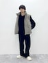 ダウンベストを合わせたクリーンスタイル。 撥水性のあるリサイクルナイロンを使用した ダウンベストはダウン90%、フェザー10%と 暖かさや軽さに適した配分がされています。 着用感はゆったりと大きめですが、 しっかりと存在かんのあるの一枚。