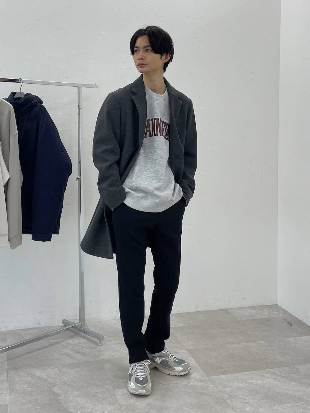 スワイプすると動画も見れます! - カジュアルスウェットにコートを 羽織ることでキレイ目にカジュアルに! ・アウター ウール見えの上品な質感かつ軽量! 程よいミドル丈のコートなので、 世代を問わずに着こなしやすいです! 痩せ型の方なら保温性のインナーを 重ねても余裕があるサイズ感 ・スウェット 程よくゆとりあるリラックスシルエット! 表はコットンのようなポリエステルを使用し、 ケアが楽になっていることに加えて、 イージードライなので冬の乾きにくさも解消! 裏地は起毛仕様で暖かく着ていただけます! ・パンツ 程よくスリムなキレイ見えシルエット。 オンオフ兼用できるミニマルなデザインで シーンを問わずに穿けるのが嬉しい! 裏起毛で冬でも安心の着心地です。