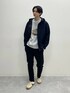 サッと着られる春のデイリースタイル 軽量で扱いやすいフードブルゾンに スウェットを合わせたデイリースタイルです。 一枚でも様見えのフォトデザインを インナーにするとこでコーデのアクセントに! スリムパンツにすることで、全体的には キレイ見えのスタイルにしています。