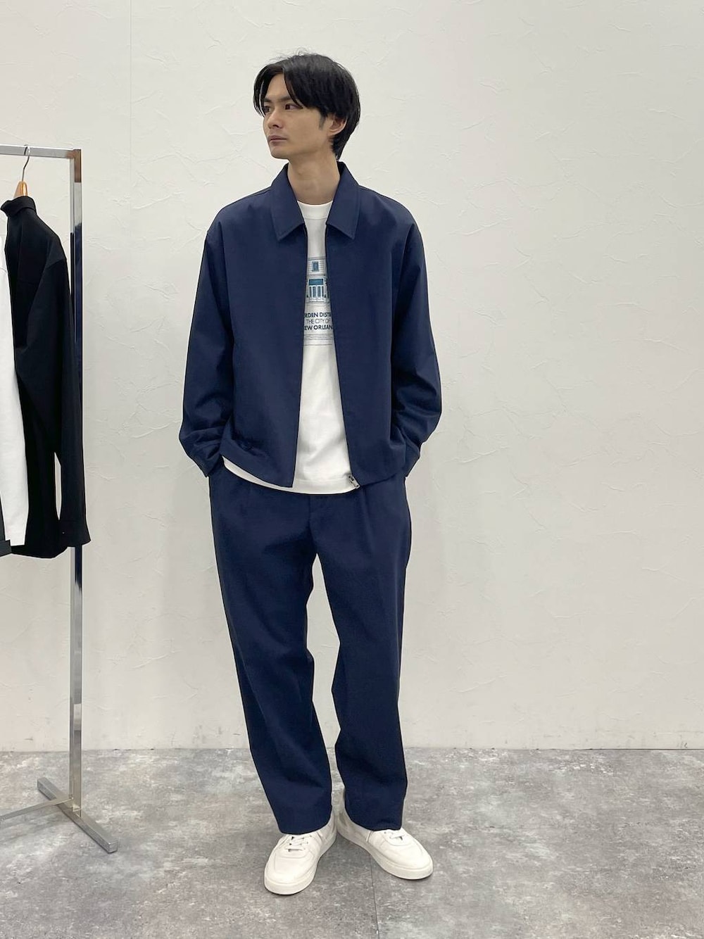 デニムセットアップスタイル デニム感のあるセットアップで カジュアルながら程よくクリーンに 見えるセットアップスタイルです。 インディゴ染料を使わずにデニムカラーを 表現しているので色落ちしにくく、 気兼ねなくデイリーに使いやすいです。 若干のストレッチ性があるので、 表面は滑らかにゴワつきの少ない表面です。 パンツはワイドシルエットでゆとりがあり ラフに着こなすのはもちろん、 Aラインで着こなすのもおすすめ。 痩せ型の自分にはウエストが少しゆとりがあったので 細身の方はワンサイズ下を参考にしてみるのが おすすめになっています!