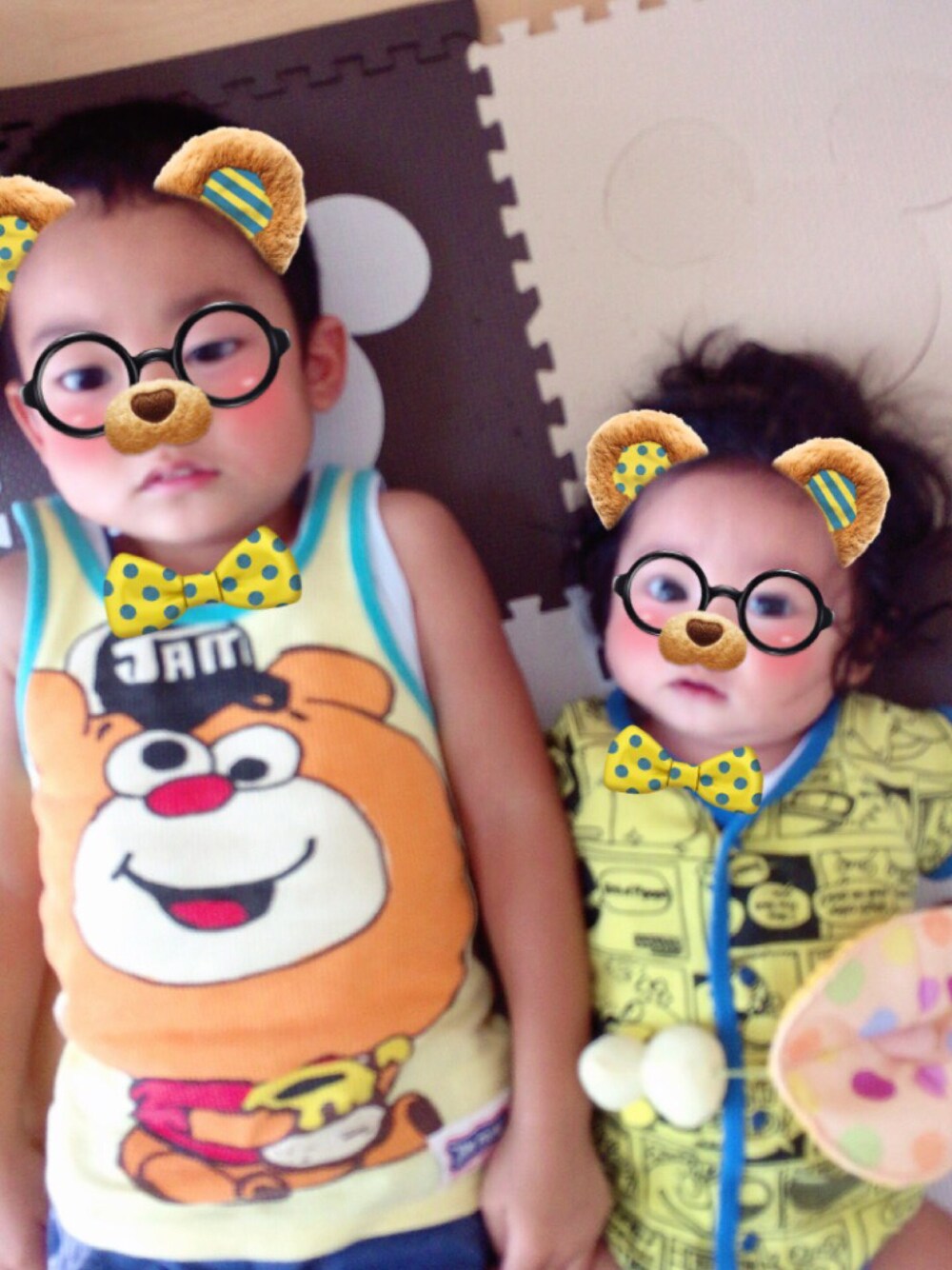 兄弟お揃いカラー✨ snowのクマちゃん気に入ってます((*´∀`*))