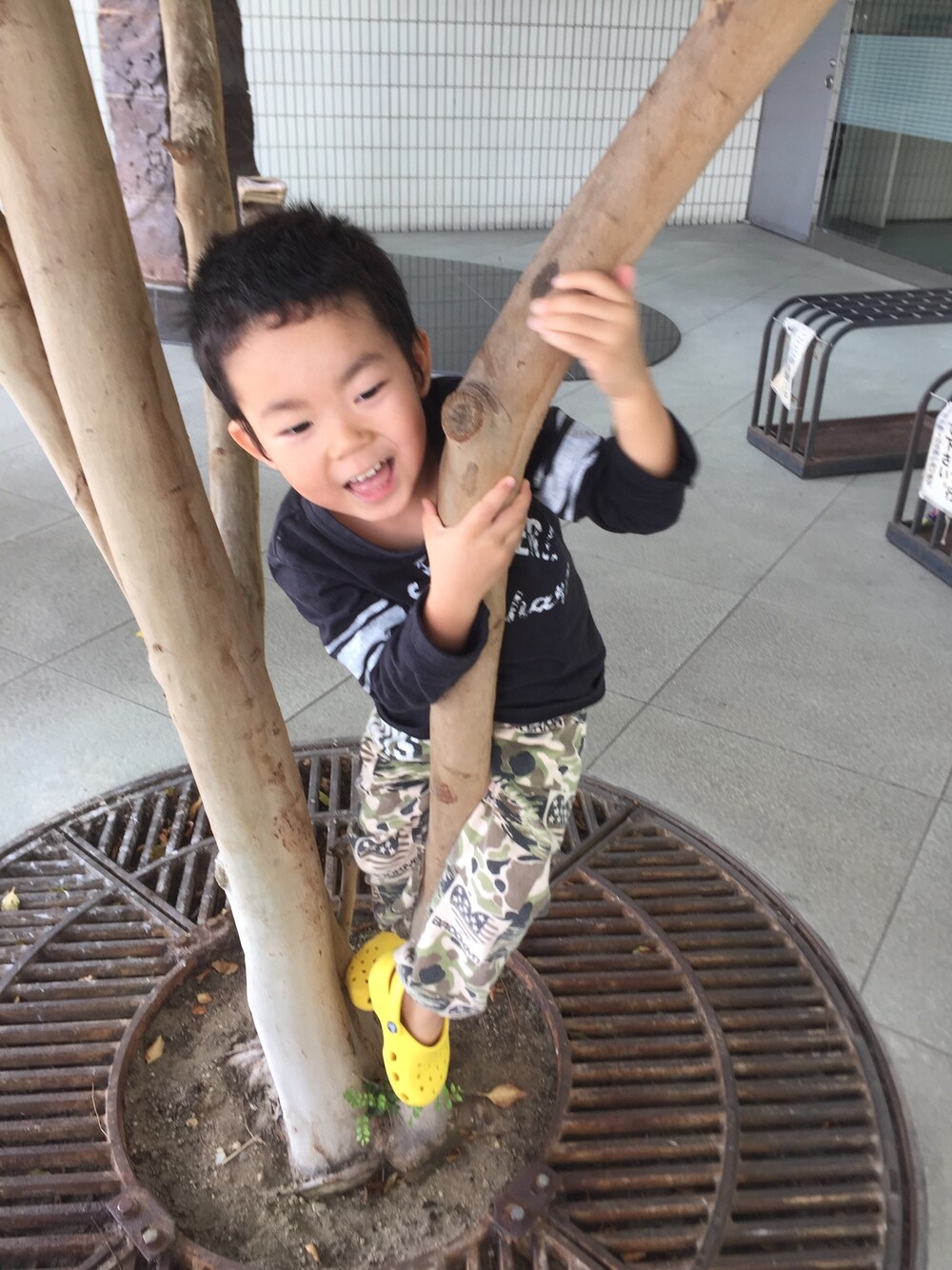 グリーン系のパンツ、イエロー系のその他シューズを着用したキッズの秋コーディネートの1枚目の写真