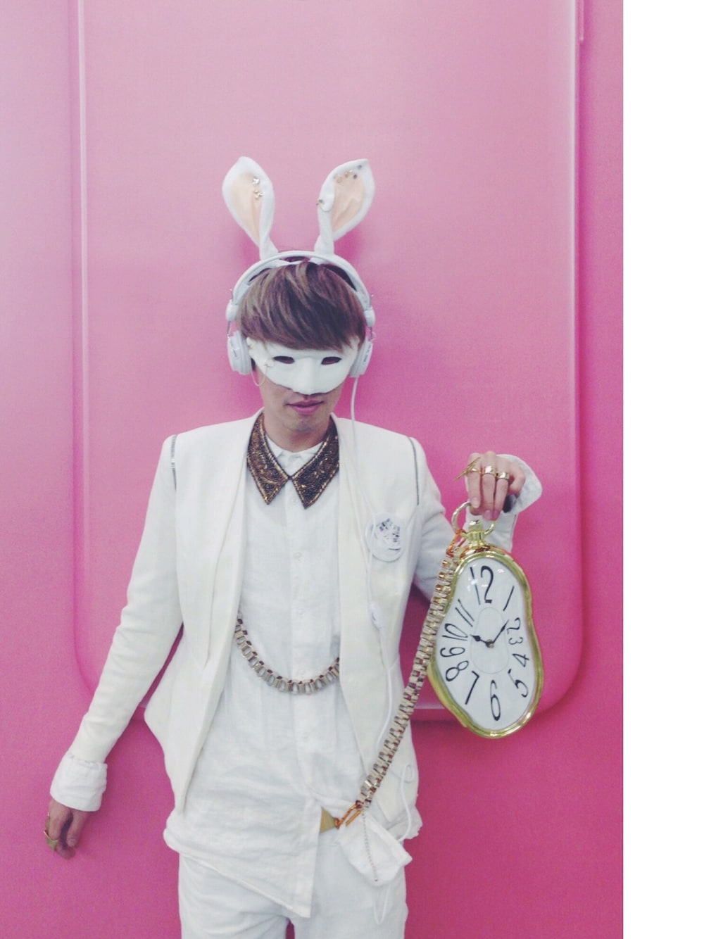 時期的にハロウィンコーデを笑 アイコンにしているコスチュームです。 当時K-popにはまっていたので、 エッジの効いた不思議の国のアリスのウサギです。 うさ耳付きヘッドホンとマスクは自作しました笑
