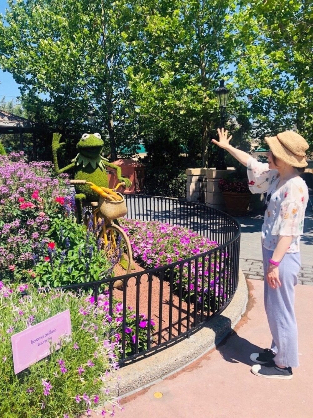 やっほー!🐸! WDWエプコットはお花がたくさん💐 なので花柄トップスで散策🚶♀️