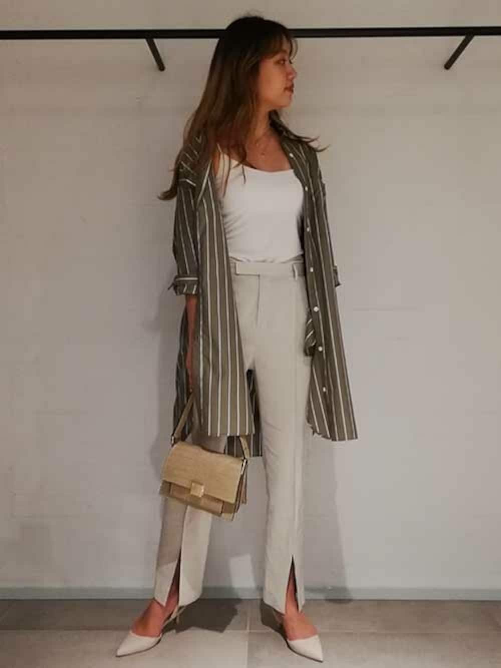 OUVRAGE CLASSEのシャツ/ブラウス「ストライプシャツチュニック」を使ったコーディネート