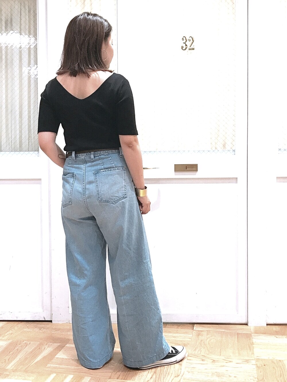 デニム x スニーカー 👟 シンプルなスタイルには 女性らしいトップスをプラスして オトナカジュアルに☺︎ バックスタイルがお気に入り♡