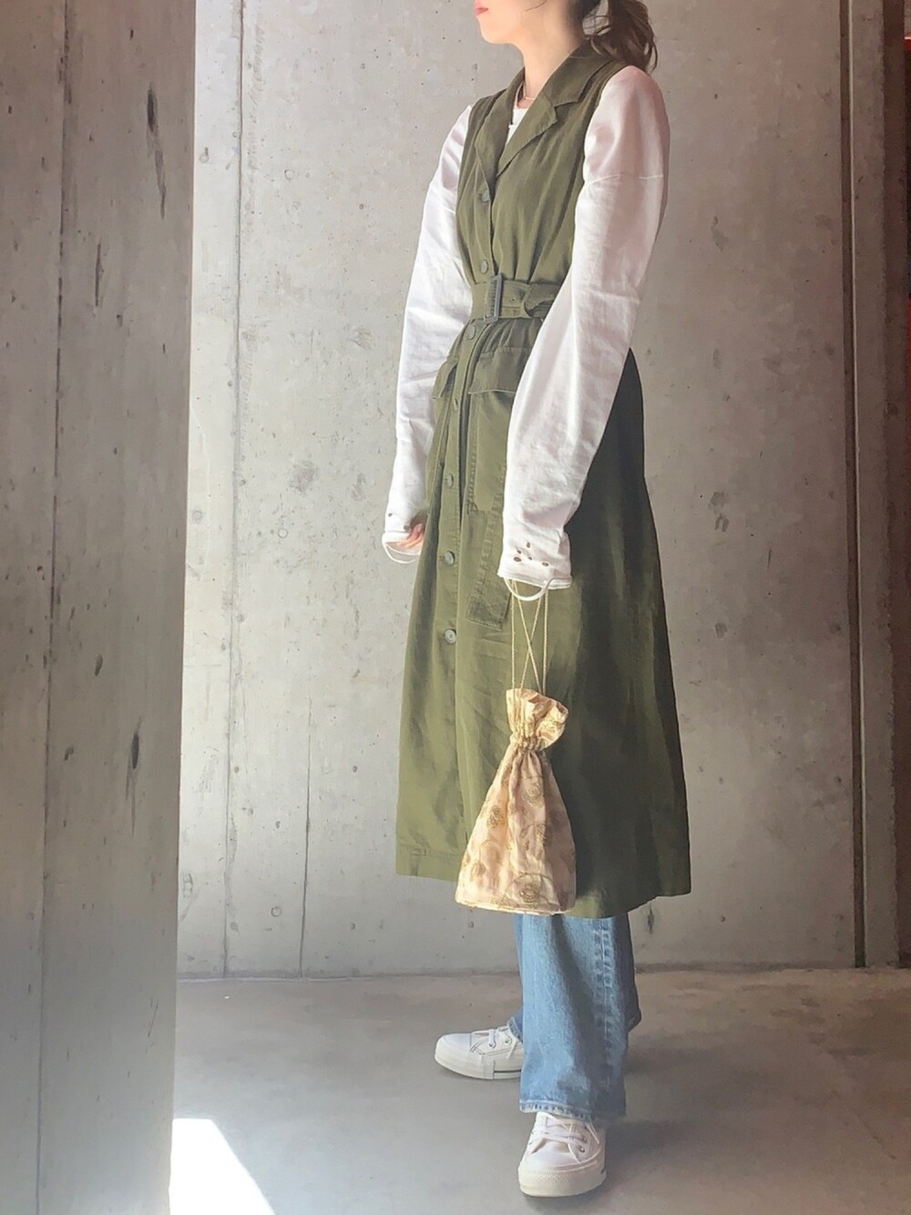 yopiのショルダーバッグ「DIR 69 × Ray BEAMS / 別注 刺繍 巾着バッグ」を使ったコーディネート