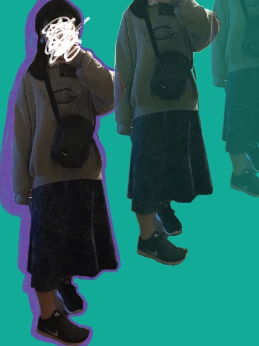 【初投稿☺︎】 トレーナーとスカートは下北で購入した古着です✔︎ ・トレーナー/¥700 ・スカート/¥1000 くらいでした! 小物はNIKEでスカートが柄なので黒で統一しました🖤 これから少しずつ投稿していけたらいいなと思ってま~す 宜しくお願いします🤞🏽