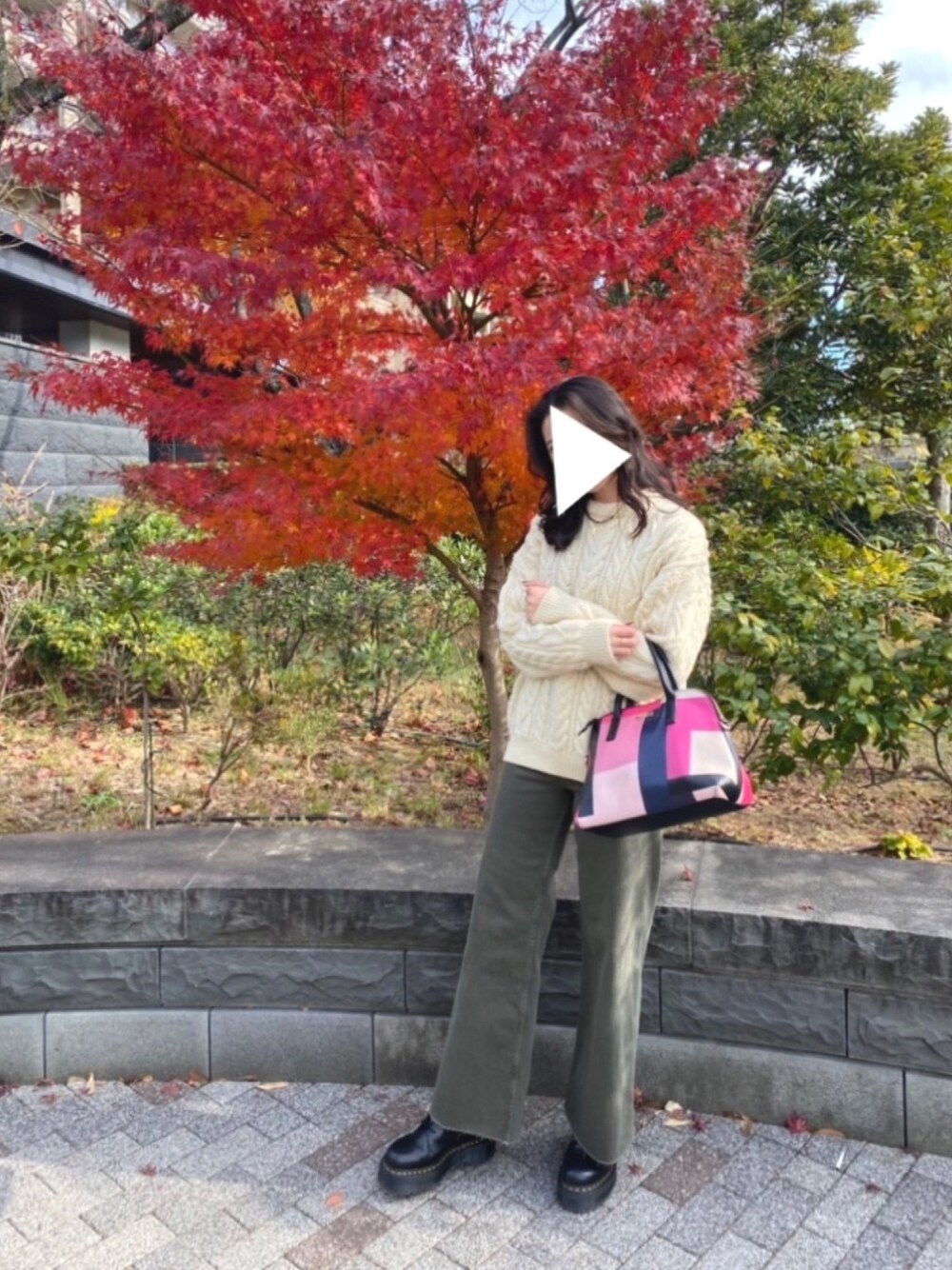 白ニットは着回し抜群✨ シンプルなスタイルにアクセントになるバック◎🦩