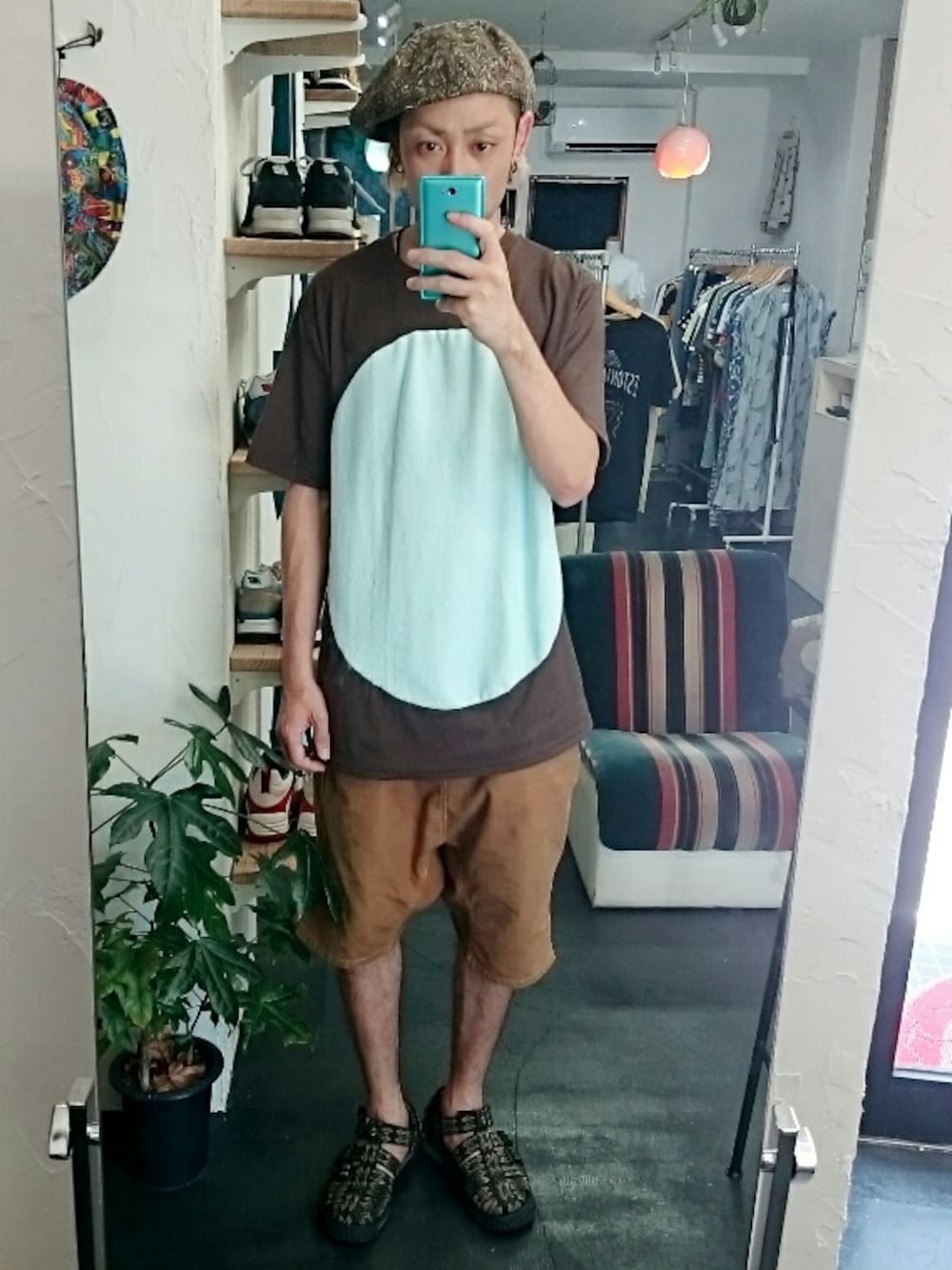 yusuke のTシャツ/カットソー「途中でやめる 丸Tシャツ ブラウン×薄水色 (ユニセックス)」を使ったコーディネート