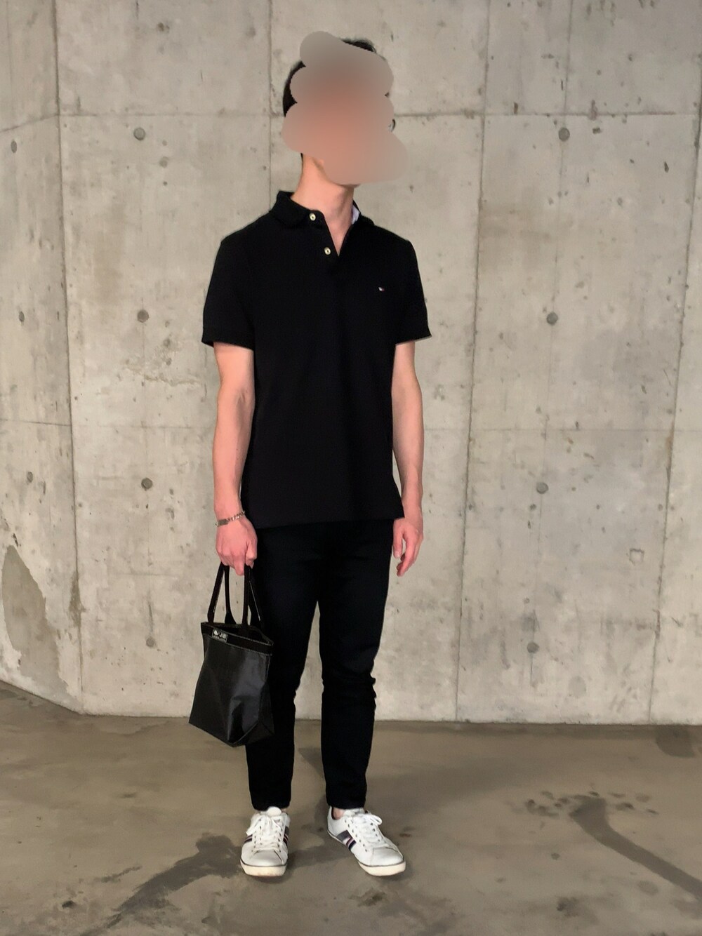 モノトーンでクールにしたかったのですが、完全にケータイショップ店員風になりました。黒ポロシャツの威力はすごいです。^^;
