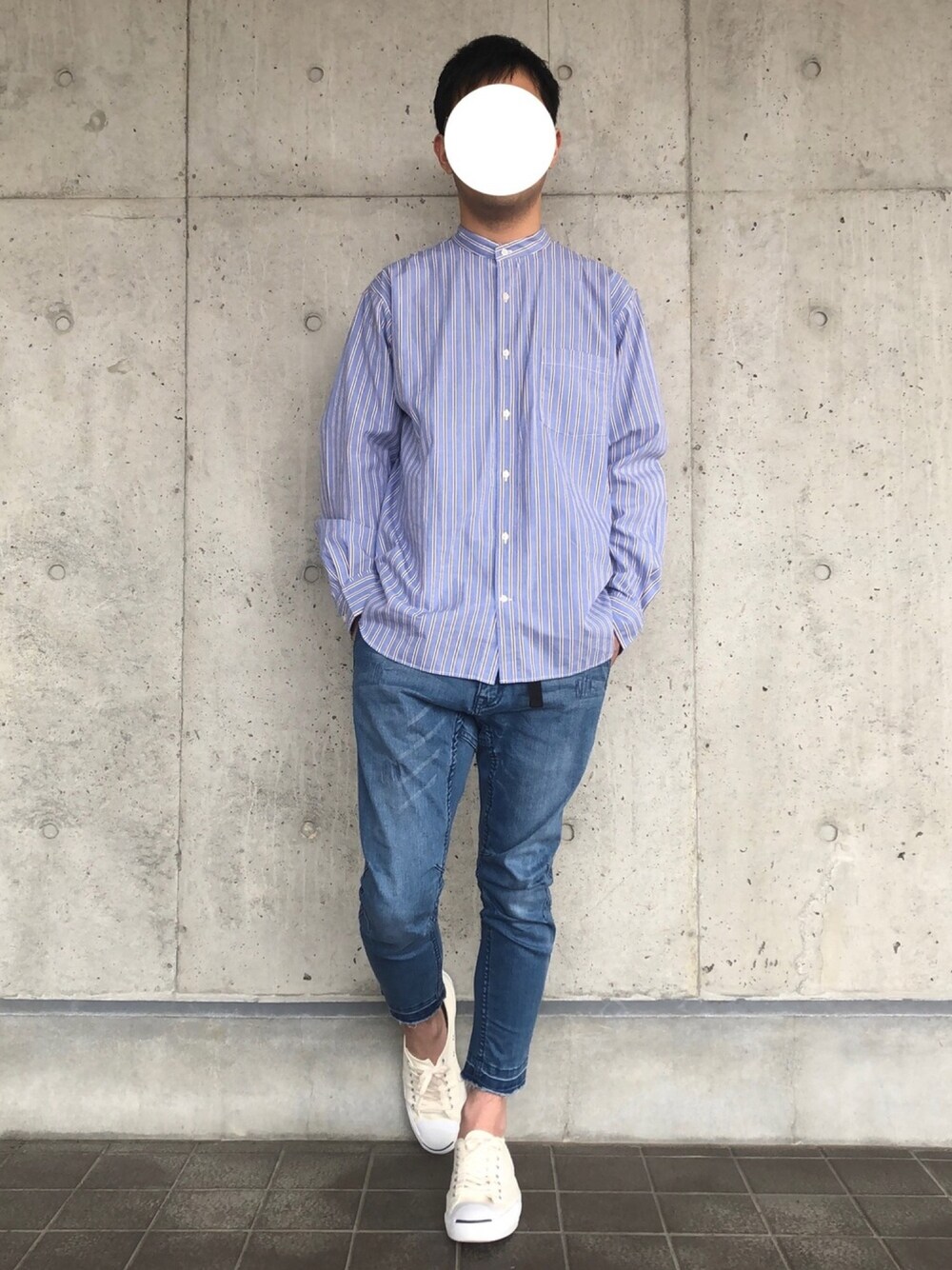 おっくんのシャツ/ブラウス「ファインスムースストライプバンドカラーシャツ/817740」を使ったコーディネート