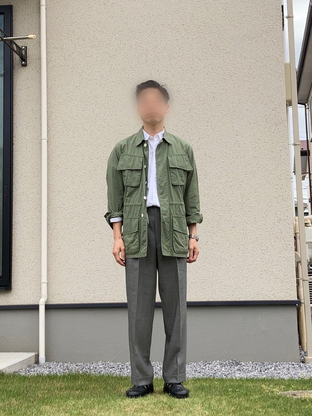 天パが息子と娘に遺伝しました。のミリタリージャケットを使ったコーディネート