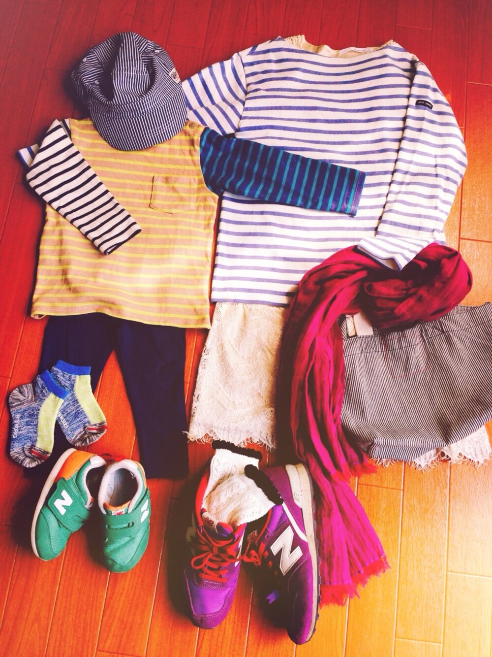 お散歩日和☻ (kids) キャップ/lee トップス/UNIQLO レギンス/H&M ソックス/FITH WORKS シューズ/NB (mama) トップス/セントジェームス レースワンピース/ZARA ソックス/しまむら シューズ/NB ストール/UNIQLO
