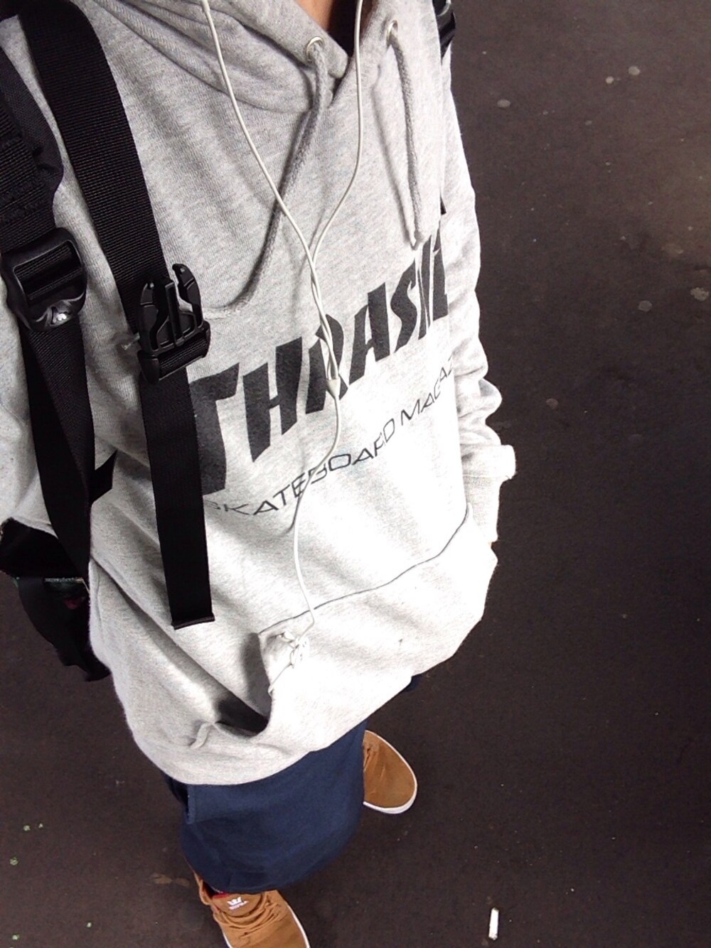 今日も雨予報ですが地元は空がきれい スケボー二連休目です。 久しぶりにTHRASHER 昨日に同じく今日もだる着で登校 いってきますー