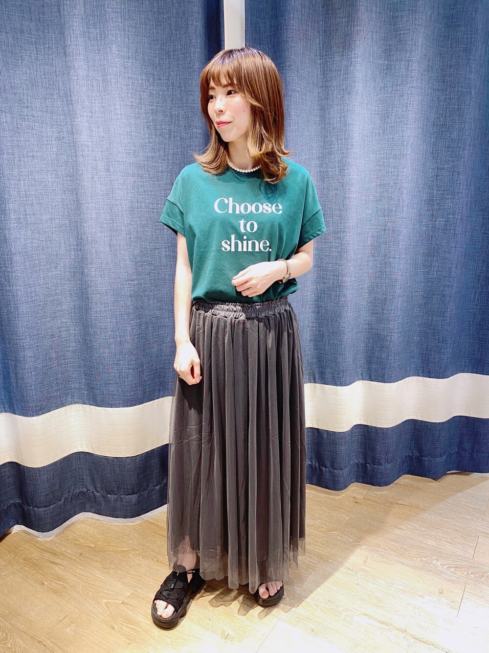 トレンドのチュールスカートとロゴTで大人カジュアルにまとめました◎
