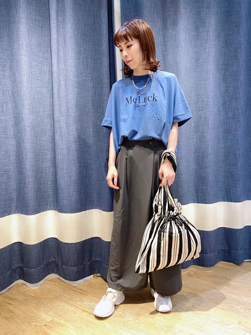 Tシャツは接触冷感なのでサラッとした着心地です♪ ラップ風ワイドパンツと合わせてリラックススタイルにまとめました◎
