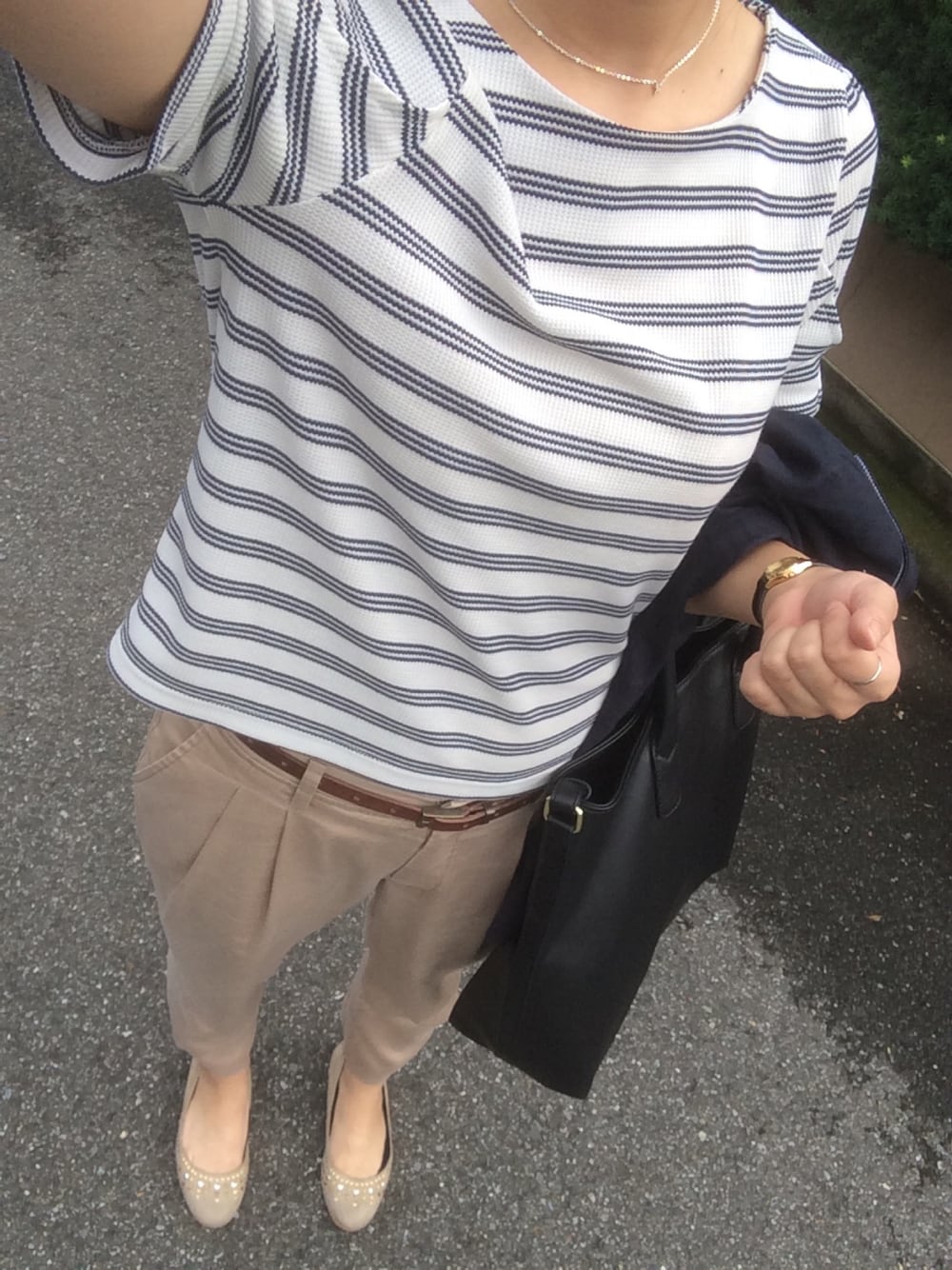 仕事着 月曜日きたトップス 上着脱ぐと困難なってます。 パンツ、実はチャリ乗った時に お尻汚れちゃって そのままお尻に1センチくらいの汚れついてるw 社会人としてどーしたものか。