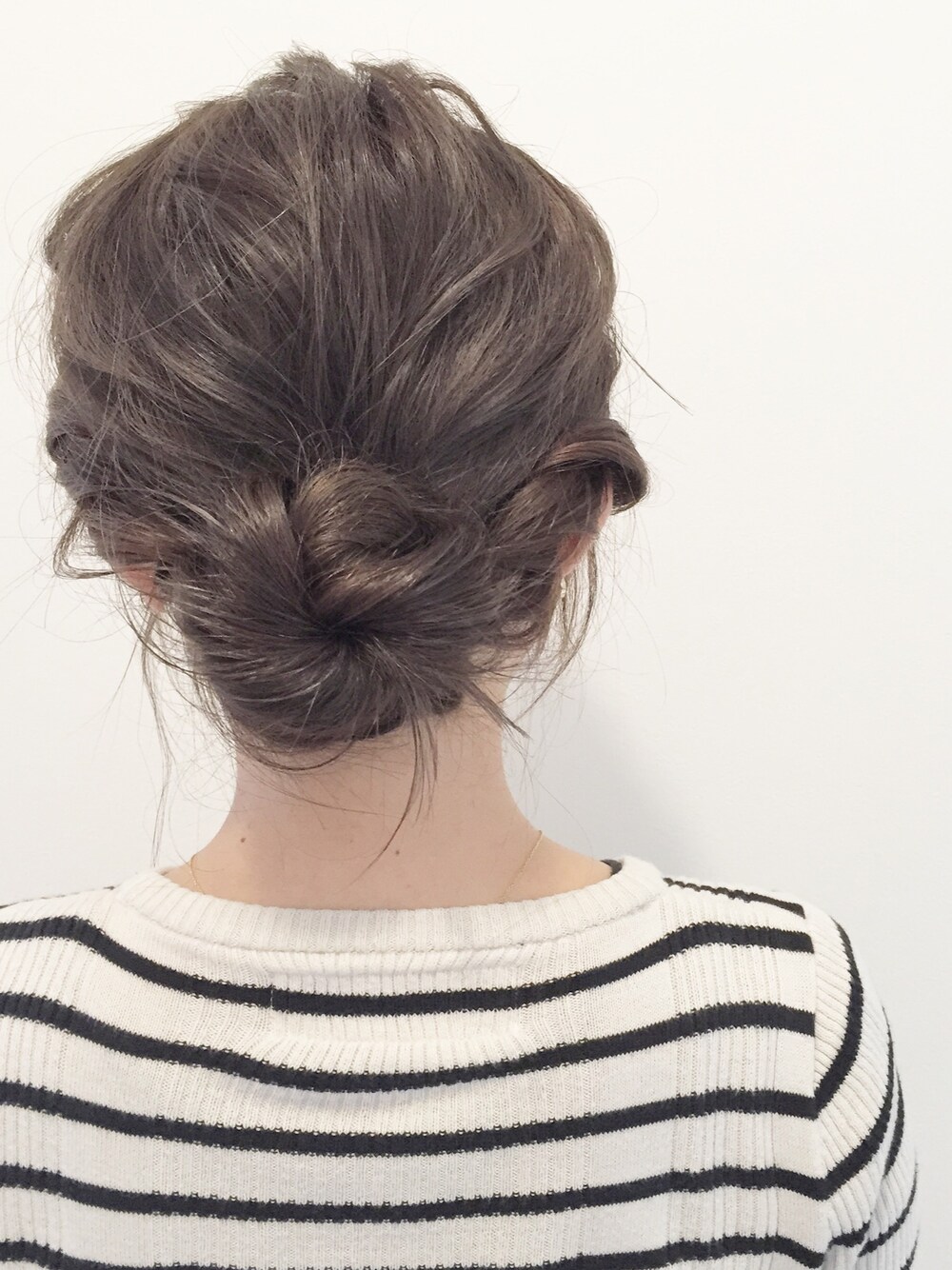 ハットにも合う! 1 サイドを残して下めに結ぶ 2 結んだ毛をツイストさせてお団子に 3 サイドをツイストさせて後ろまで持っていき、2のお団子に巻きつけて止める 4 ゆるく崩して完成!