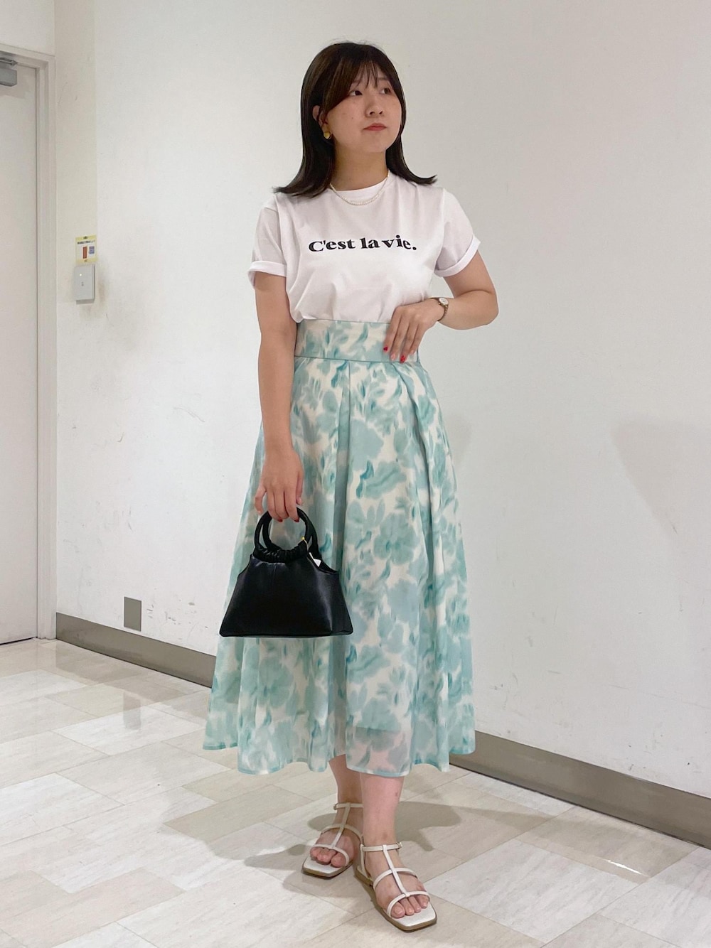 おゆき(ROPE' PICNIC イクスピアリ店)のスカート「ブラーフラワー柄スカート」を使ったコーディネート