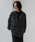 ベロアのシャツとデニムのモードカジュアルコーデ ポイント シャツはベロア素材で上品な着こなしに向いています! 全面に柄も入っているので一枚で着ても様になるデザインです! パンツはZIPの開け具合によってフレアにもワイドフレアにもストレートにもすることができます! これ1本でいろんなシルエットを楽しめる万能パンツです