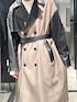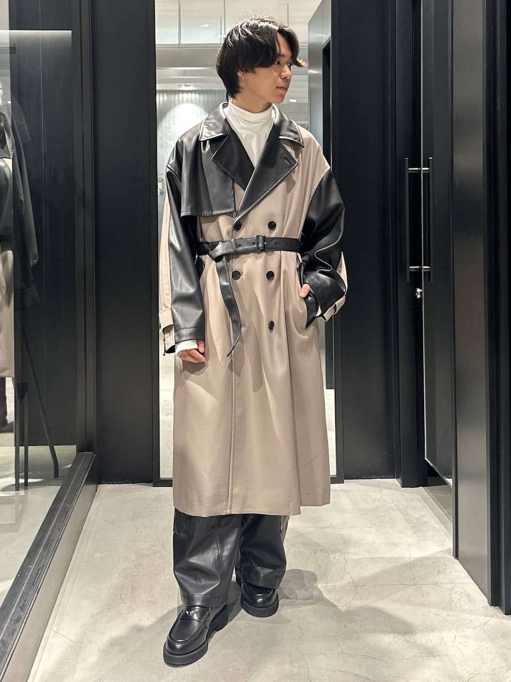 「異素材が描く、静かなラグジュアリー。」 上質なポリエステル×レーヨン生地に、滑らかなフェイクレザーを組み合わせたエレガントな一着。 繊細な異素材のコントラストが、シルエットの美しさを際立たせます。 程よくゆとりを持たせたモダンなフォルムは、纏うだけで洗練された印象に。 ウエストベルトでシルエットに変化をつけられ、チンストラップを立てればモードな表情を演出。 構築的でありながらも、柔らかさを感じるハイエンドなデザインです。