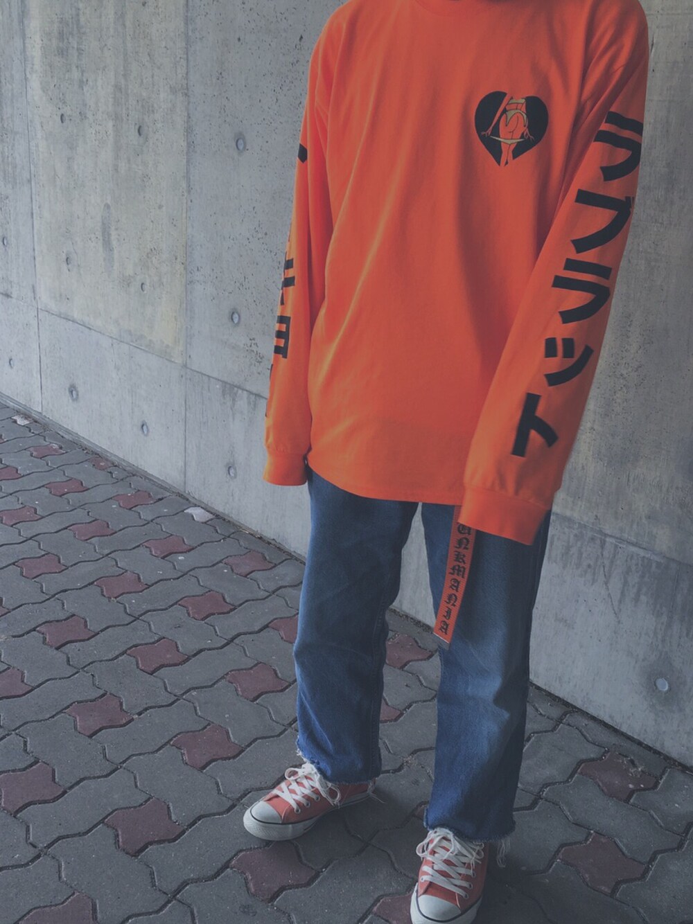 オレンジコーデです🍊 最近オレンジも可愛いなーって でもやっぱピンクがいちばんです。笑 最近は学校つまらなさすぎて 土日いきがいにしてますww