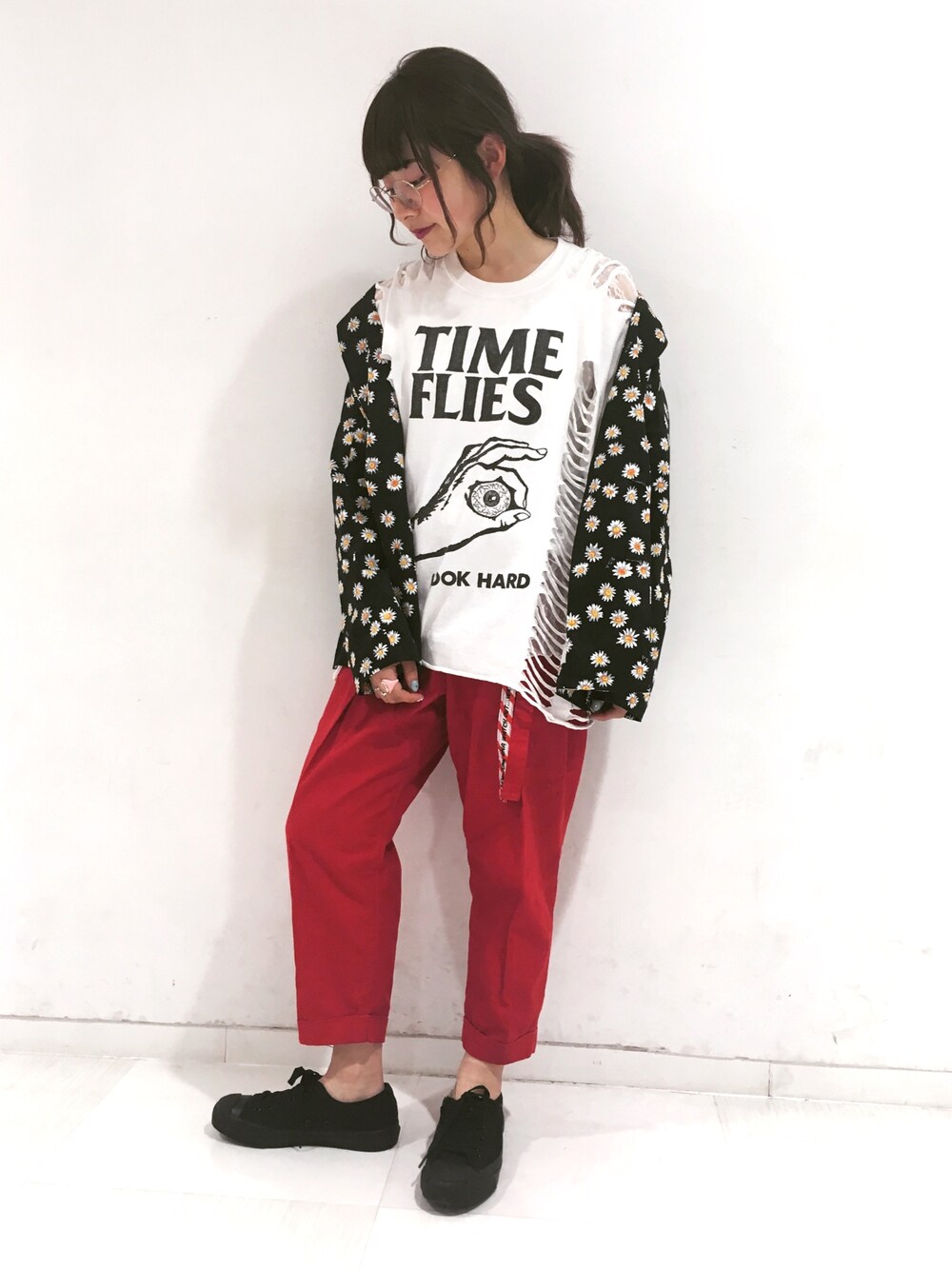 柄×赤でおもいっきり個性派スタイル🌼🔥